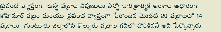 All diamond belonging Guntur Krishna Districts (Kollur Diamond Mines ) |